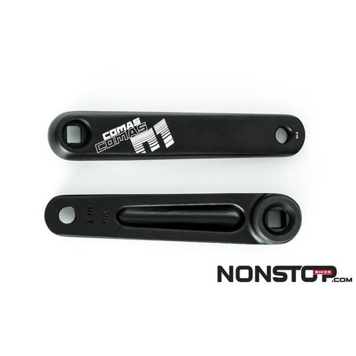 Description - Manivelles en aluminium forgé pour système de boîtier de pédalier JIS - Conception simple qui garantit une rigidité et une résistance maximales. - Filetage pour pignon standard 1,37" x 24tpi, compatible avec la plupart des pignons. - Section filetée de 14mm pour pouvoir utiliser un protège pignon type UCI - Déport de 33mm pour éviter d'éventuels frottements avec le châssis ou les cylindres de frein. Matériau - Aluminium 6061-T6 Mesure - Longueur : 130 mm - Décalage : 33 mm - Filetage du pignon : 1,37"x24t - Filetage de la pédale 9/16" Finition - Anodisé noir avec graphismes COMAS gravés au laser. Poids - 445 g (Ensemble : manivelle droite + gauche) Remarque importante Le filetage de contact minimum entre la manivelle et le pignon doit être de L7 mm pour éviter d'endommager le filetage.